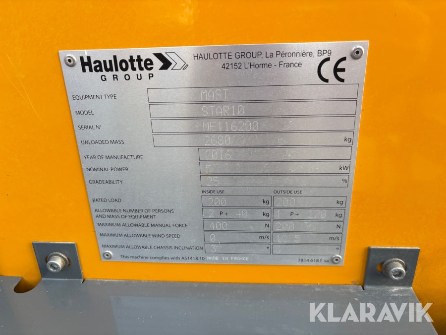 Pelarlift Haulotte Star 10