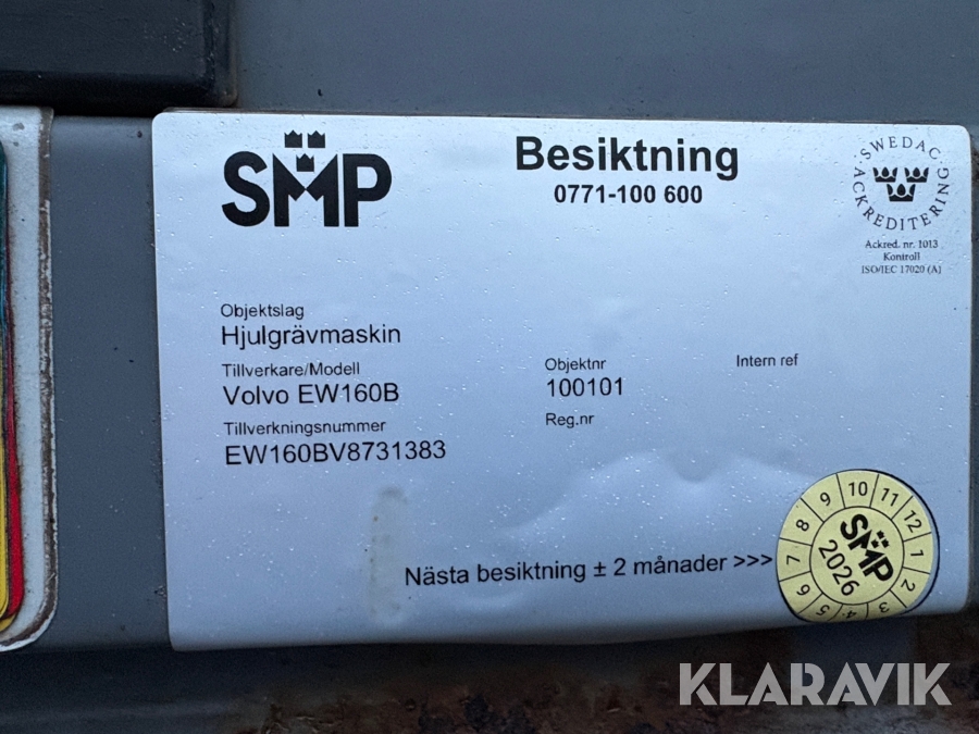 Hjulgrävare Volvo EW160B SMP2, Indexator