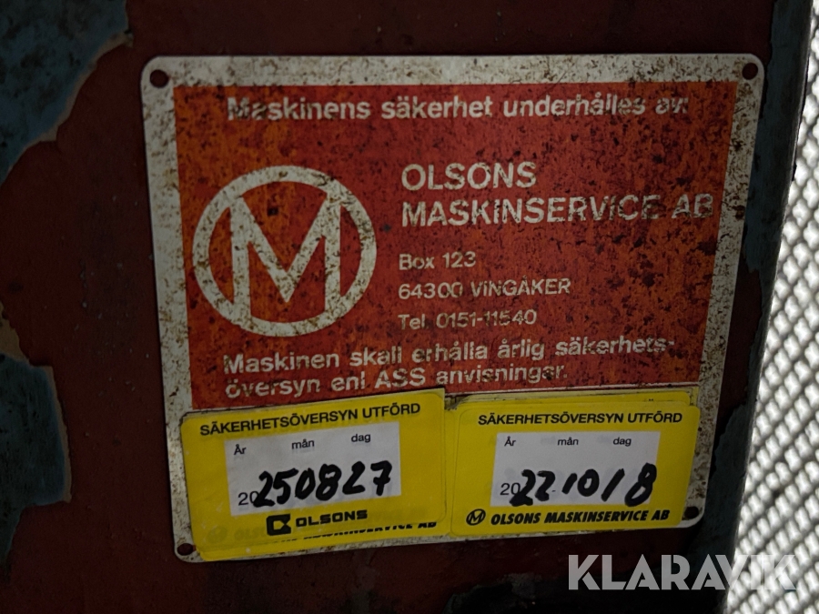 Boka frakt? Det finns ingen specifik information om frakt för just det här objektet, men om du skickar oss en förfrågan via vårt fraktformulär, så undersöker vi möjligheten. Paket, EU-pall eller större maskin? Klaravik har fraktavtal med Schenker och i de fall vi kan hjälpa till med frakt gäller det objekt som ryms i paket eller inom en EU-pall (upp till 120*80 cm och 990 kg). Det går att beställa frakt inom Sverige, dock inte till utlandet. Vid frakt på större maskiner rekommenderar vi gärna transportföretag som du kan kontakta.