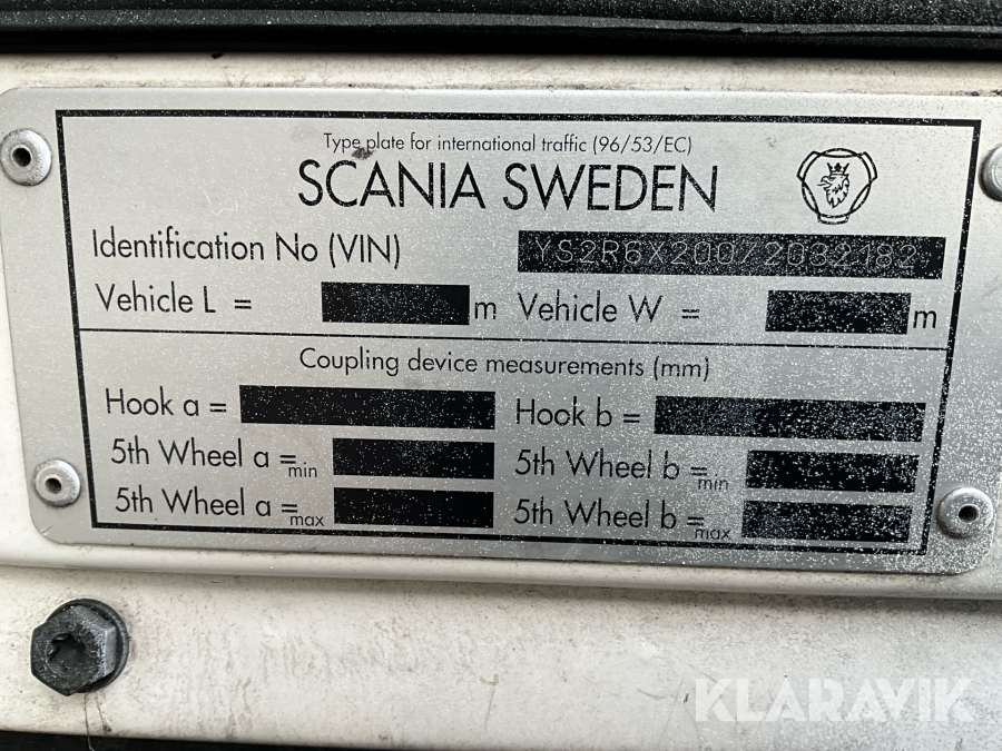 • Serie/chassinummer framgår