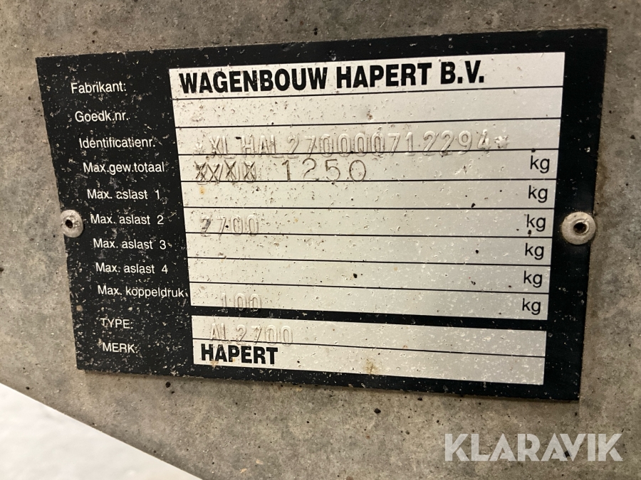 Personbilssläp Hapert AL2700