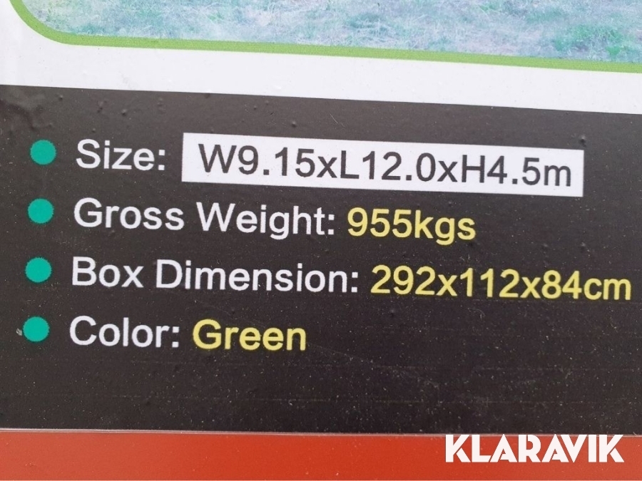 OBS! Ej monterad. Tältet ligger i stor plåtlåda med vikt på ca 1000 kg.