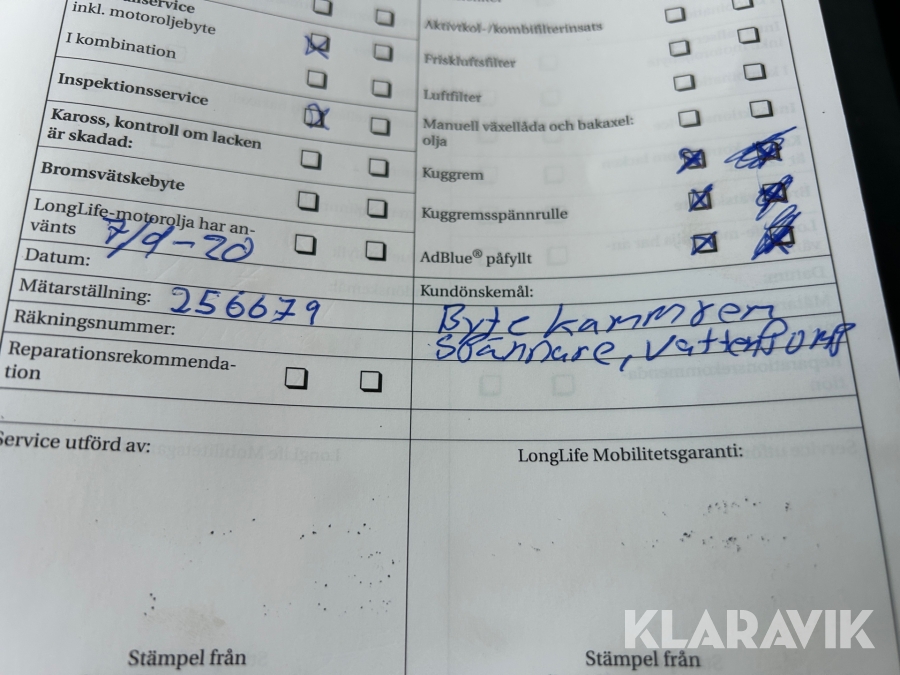 • Serie/chassinummer framgår