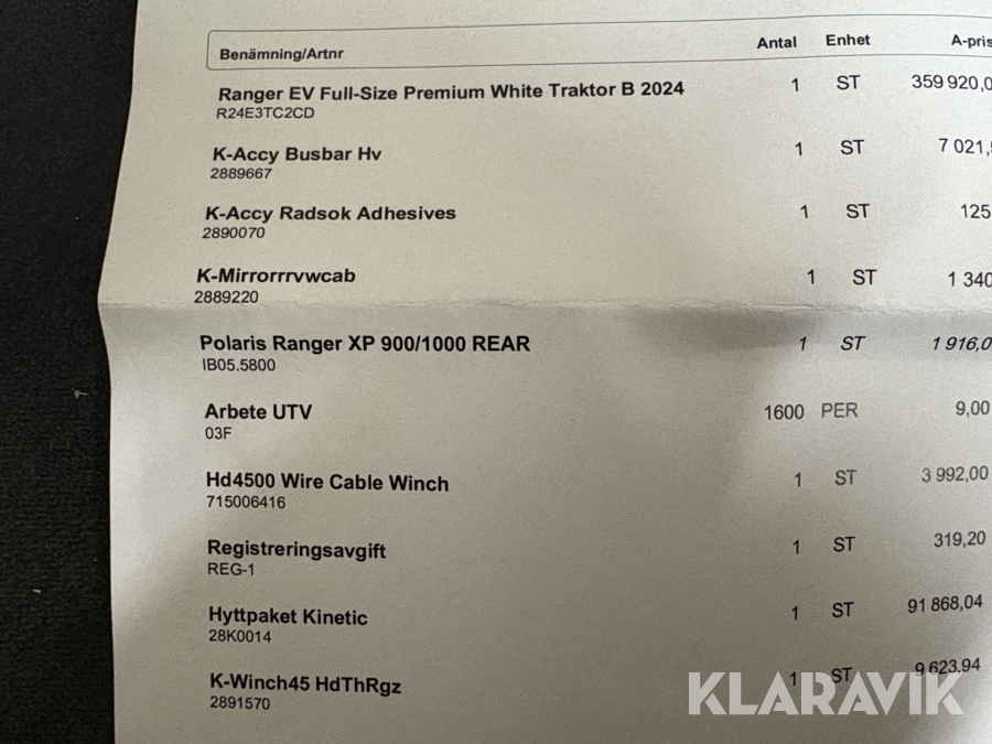 Boka frakt? Det finns ingen specifik information om frakt för just det här objektet, men om du skickar oss en förfrågan via vårt fraktformulär, så undersöker vi möjligheten. Paket, EU-pall eller större maskin? Klaravik har fraktavtal med Schenker och i de fall vi kan hjälpa till med frakt gäller det objekt som ryms i paket eller inom en EU-pall (upp till 120*80 cm och 990 kg). Det går att beställa frakt inom Sverige, dock inte till utlandet. Vid frakt på större maskiner rekommenderar vi gärna transportföretag som du kan kontakta.