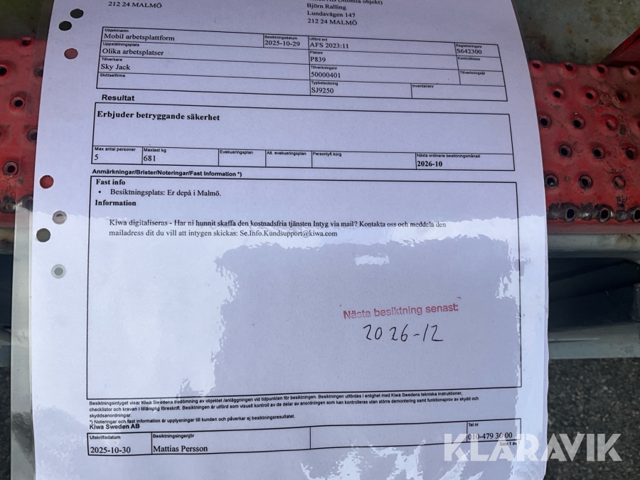 Du som köpare är skyldig att kontrollera objektet vid hämtning. Skiljer sig något avsevärt jämfört med informationen på klaravik.se? Kontakta då Klaravik innan du tar objektet från platsen. Läs fullständiga köpvillkor.