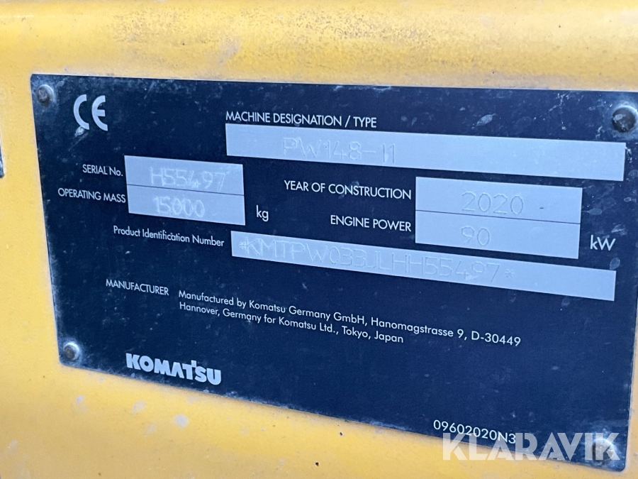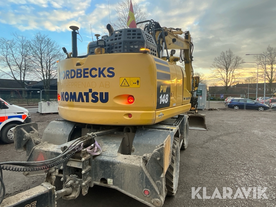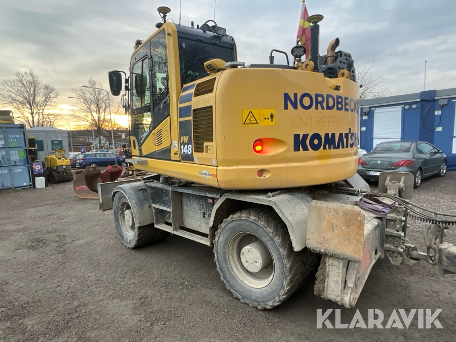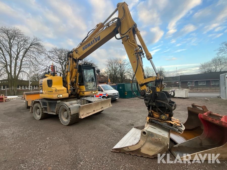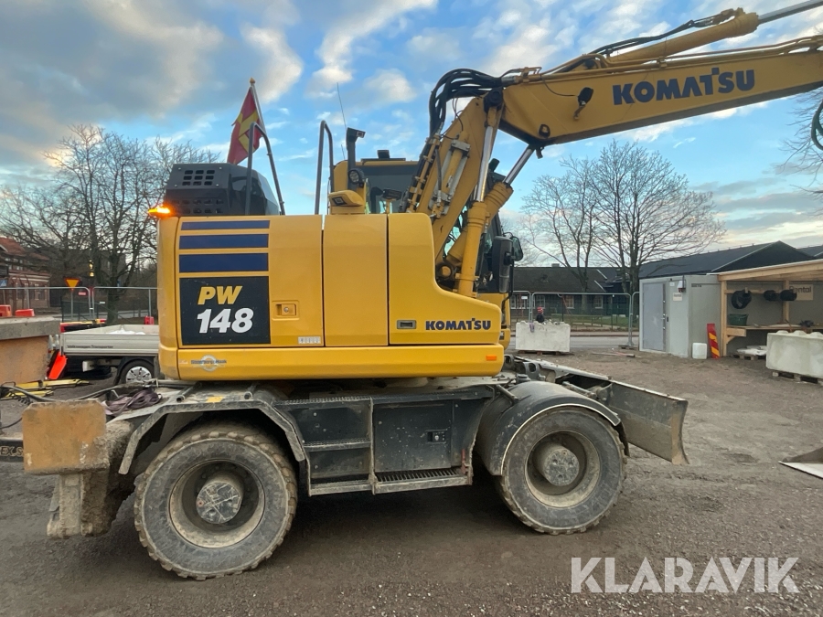Grävmaskin Komatsu PW148 med skopor och grävsystem