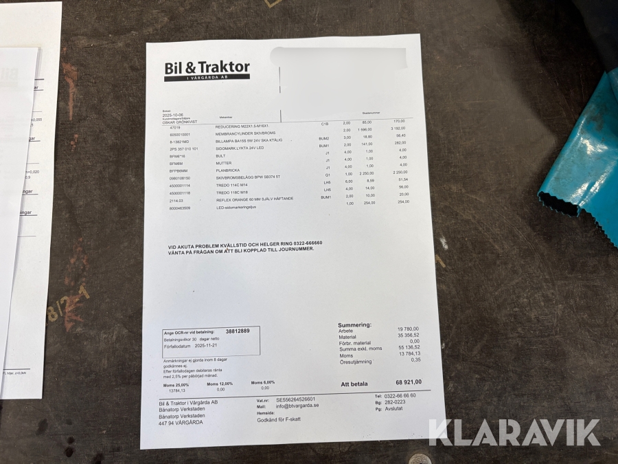Du som köpare är skyldig att kontrollera objektet vid hämtning. Skiljer sig något avsevärt jämfört med informationen på klaravik.se? Kontakta då Klaravik innan du tar objektet från platsen. Läs fullständiga köpvillkor.