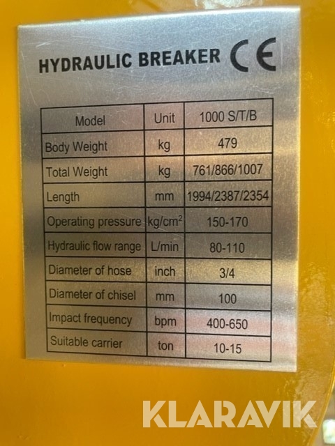 Hydraulhammare Henima 1000 S60 Ny med garanti