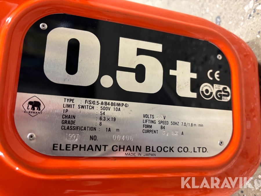 Telfer lyftblock Elephant Chain Block FB 0,5 ton