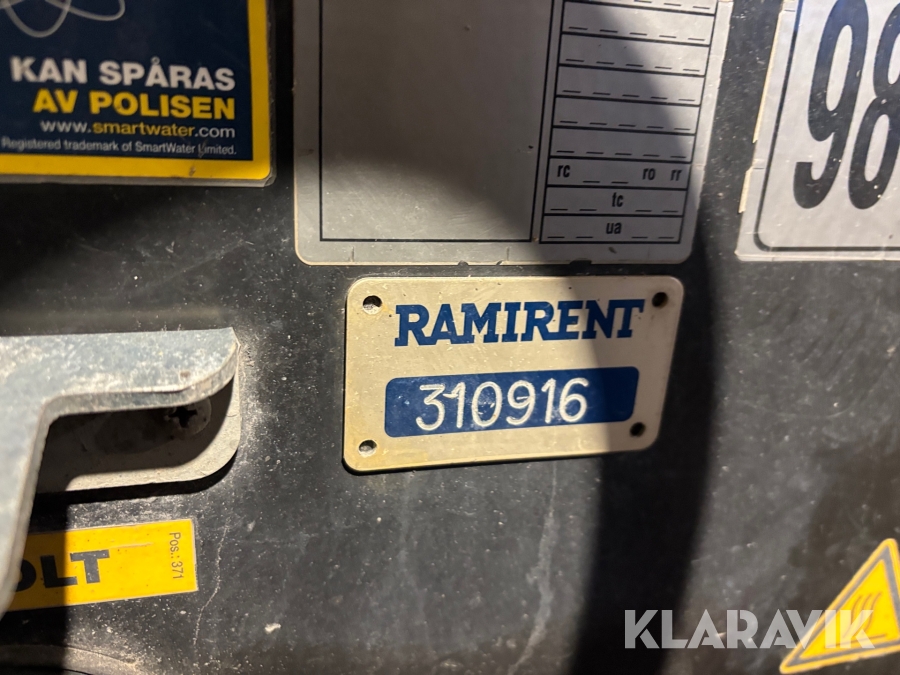 Läs om metodikenPga platsbrist är det viktigt att du som köpare hämtar inom 12 dagar från auktionsavslut. Vid frågor om frakt kontakta trade@ramirent.se.