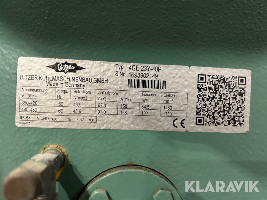 UT-aggregat Bitzer F302H till frysaggregat