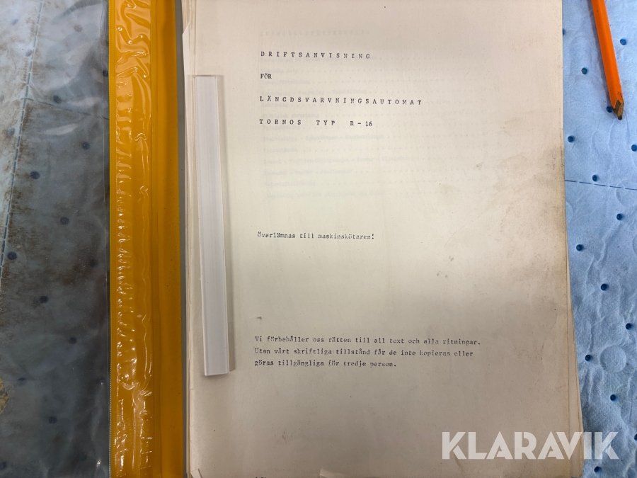 Boka frakt? Det finns ingen specifik information om frakt för just det här objektet, men om du skickar oss en förfrågan via vårt fraktformulär, så undersöker vi möjligheten. Paket, EU-pall eller större maskin? Klaravik har fraktavtal med Schenker och i de fall vi kan hjälpa till med frakt gäller det objekt som ryms i paket eller inom en EU-pall (upp till 120*80 cm och 990 kg). Det går att beställa frakt inom Sverige, dock inte till utlandet. Vid frakt på större maskiner rekommenderar vi gärna transportföretag som du kan kontakta.