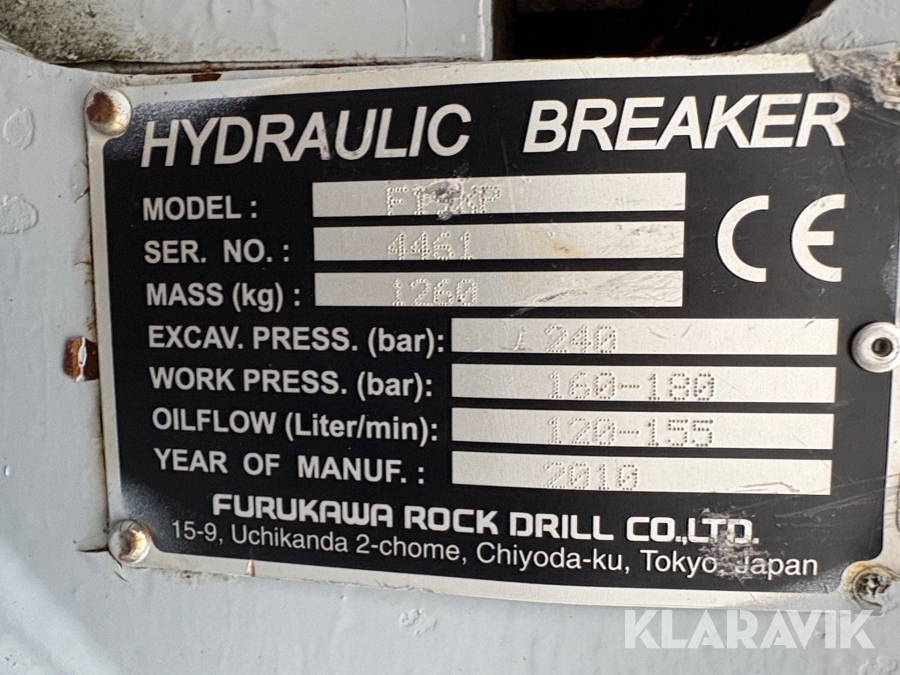 Hydraulhammare Furukawa F19XP med b20 fäste. ingår även ett s60 fäste
