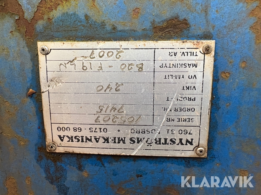 Boka frakt? Det finns ingen specifik information om frakt för just det här objektet, men om du skickar oss en förfrågan via vårt fraktformulär, så undersöker vi möjligheten. Paket, EU-pall eller större maskin? Klaravik har fraktavtal med Schenker och i de fall vi kan hjälpa till med frakt gäller det objekt som ryms i paket eller inom en EU-pall (upp till 120*80 cm och 990 kg). Det går att beställa frakt inom Sverige, dock inte till utlandet. Vid frakt på större maskiner rekommenderar vi gärna transportföretag som du kan kontakta.