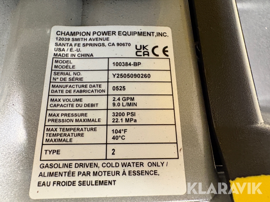Högtryckstvätt Champion 100384-BP 3200 PSI