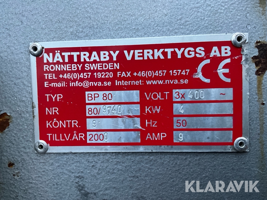 Komprimator Nättraby Verktygs AB BP 80 balpress