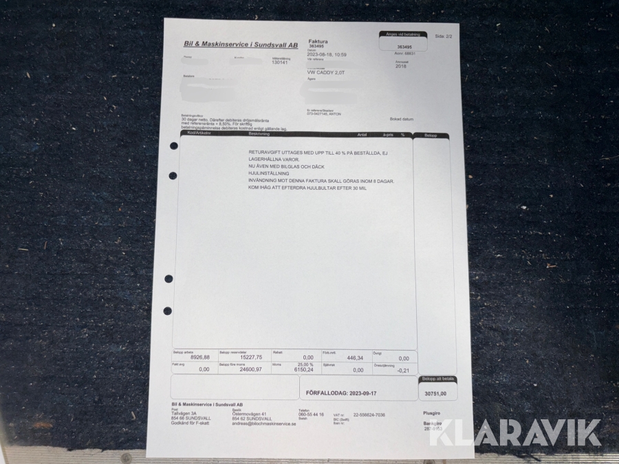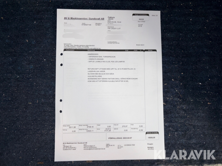 Du som köpare är skyldig att kontrollera objektet vid hämtning. Skiljer sig något avsevärt jämfört med informationen på klaravik.se? Kontakta då Klaravik innan du tar objektet från platsen. Läs fullständiga köpvillkor.
