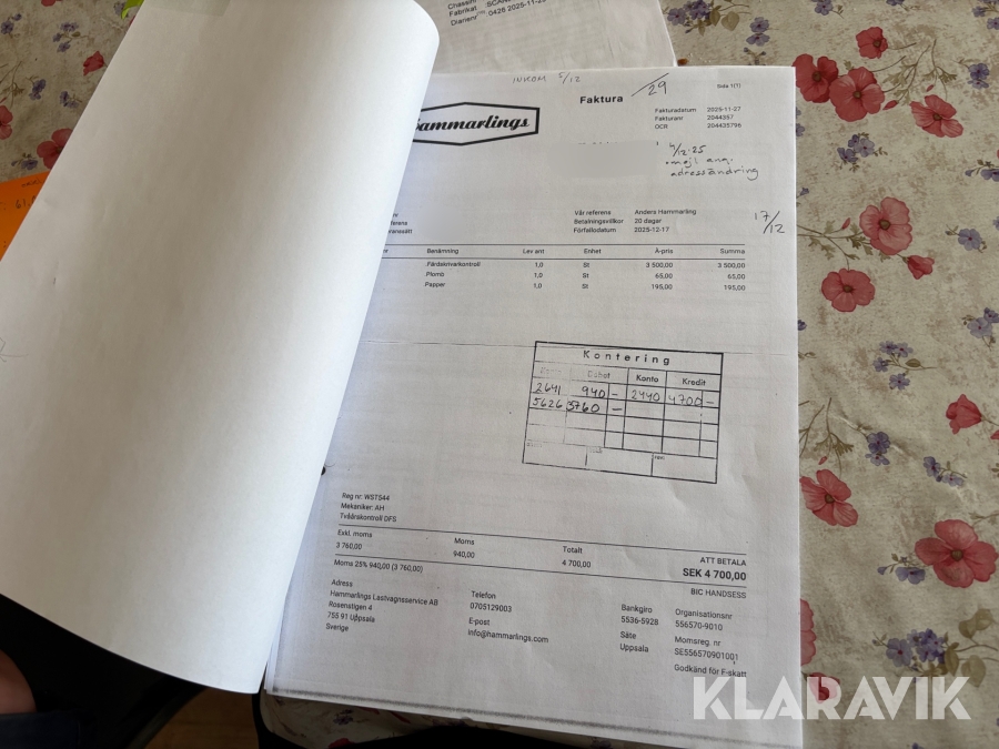 • Serie/chassinummer framgår