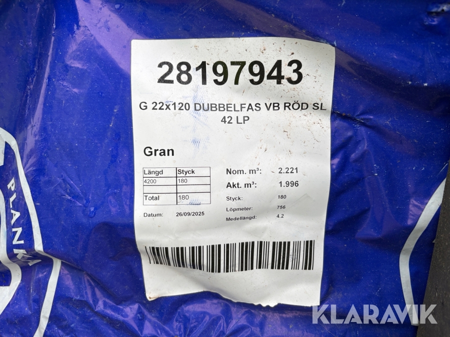 Ytterpanel 22x120 4,2m 135st