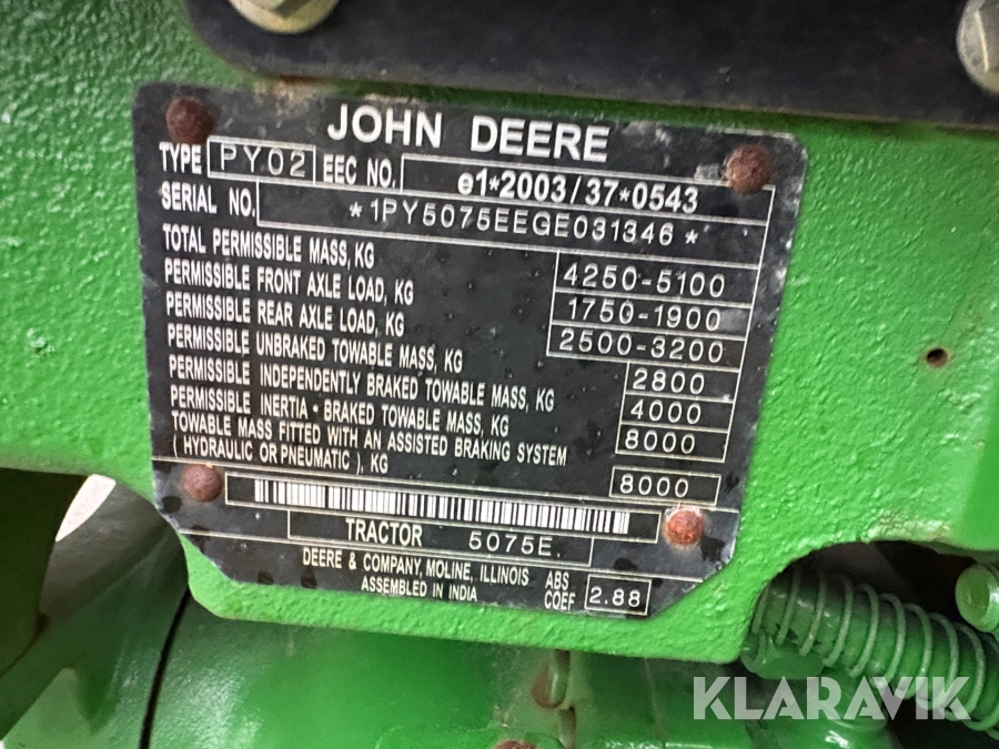 Traktor John Deere 5075E med redskap