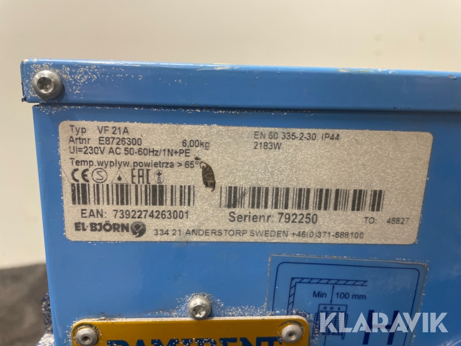 Varmluftsfläktar El-Björn VF9B, VF21A