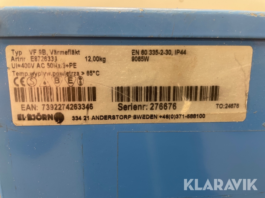 Varmluftsfläktar El-Björn VF9B, VF21A