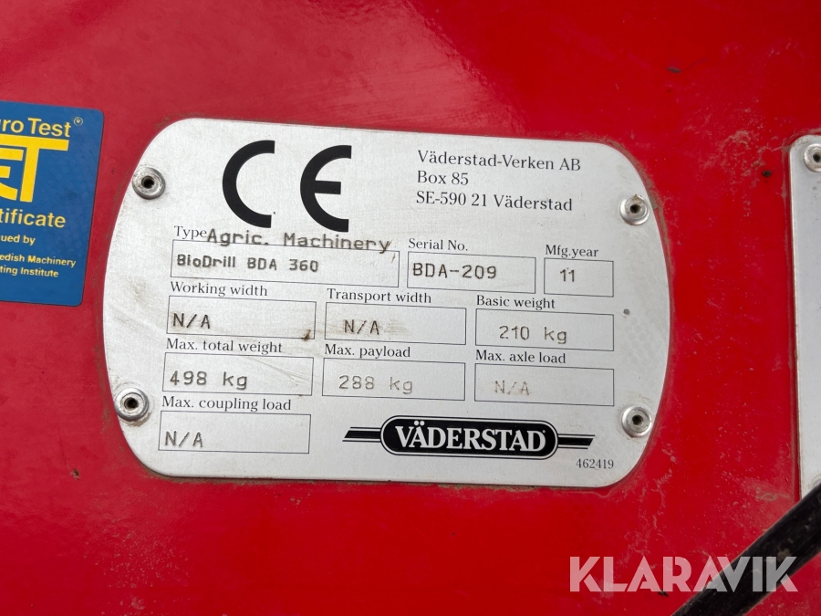 Såmaskin Väderstad Biodrill BDA 360