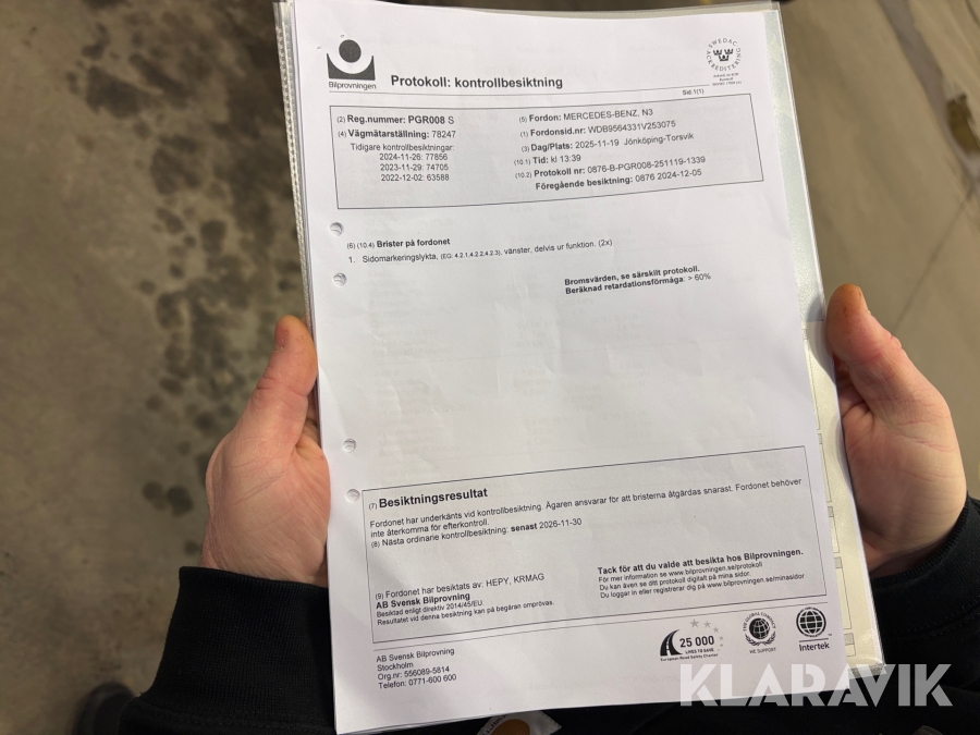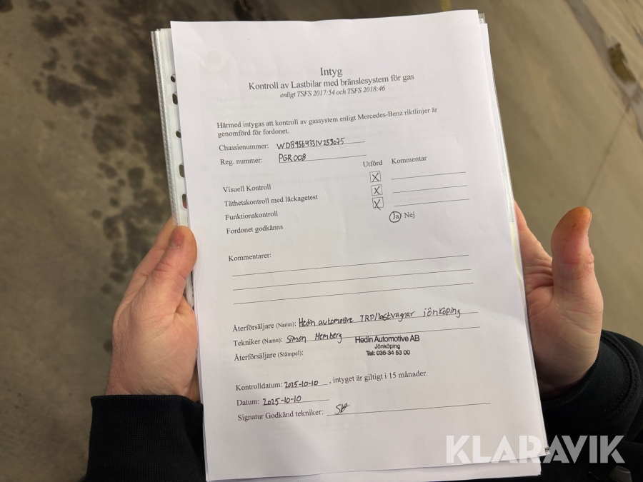 • Serie/chassinummer framgår