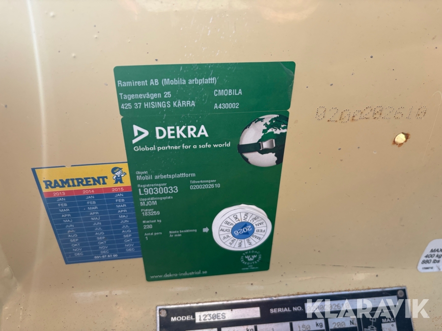 Läs om metodikenPga platsbrist är det viktigt att du som köpare hämtar inom 12 dagar från auktionsavslut. Vid frågor om frakt kontakta trade@ramirent.se.