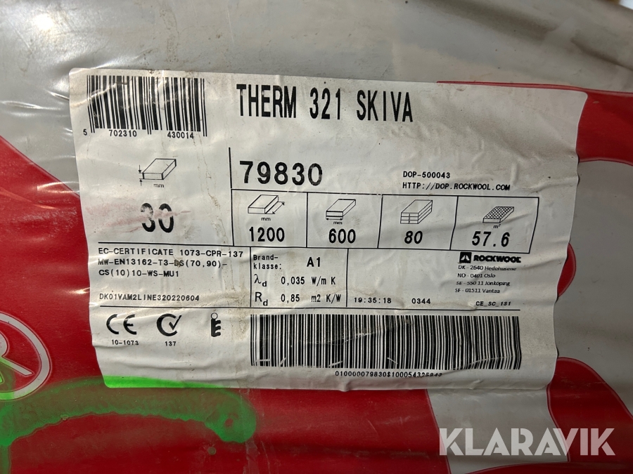 Isolering Rockwool Therm 321 skiva ca 70 st 1200x600x30