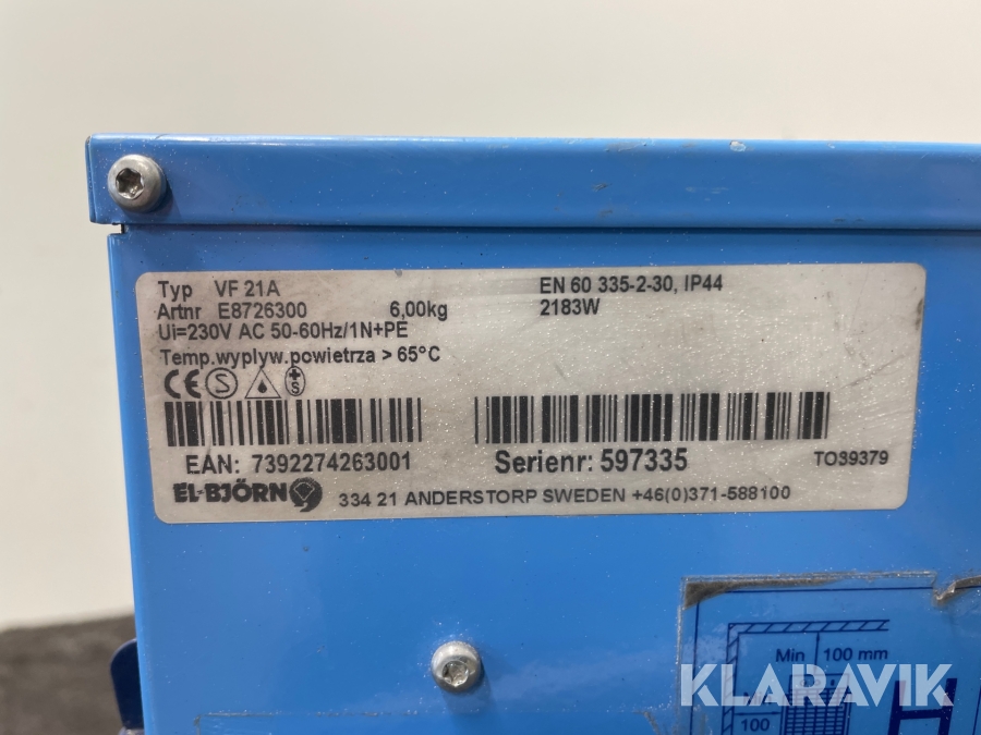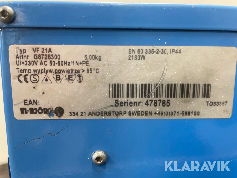 Varmluftsfläktar El-Björn VF 21 A 2st