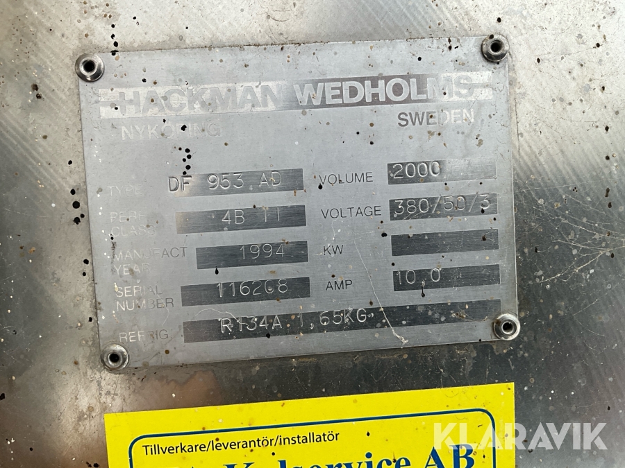 Mjölktank Hackman Wedholms DF953 AD 2000liter