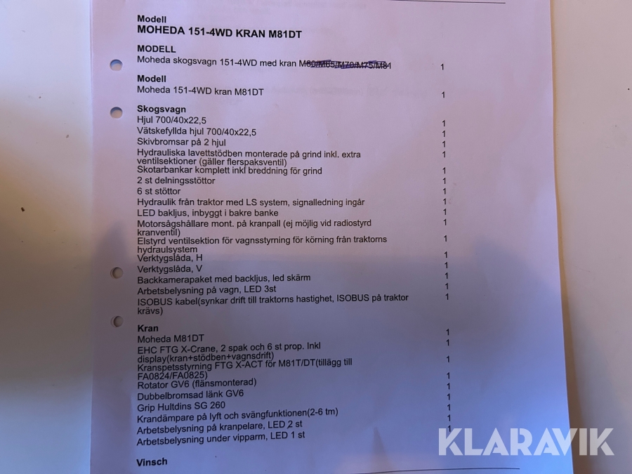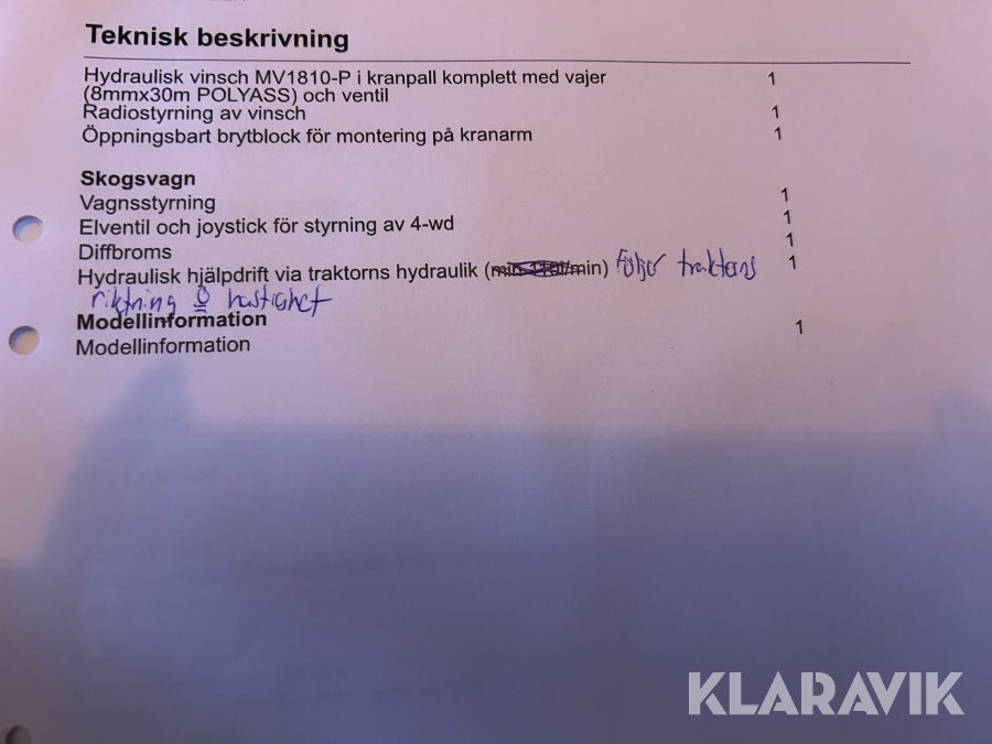 Boka frakt? Det finns ingen specifik information om frakt för just det här objektet, men om du skickar oss en förfrågan via vårt fraktformulär, så undersöker vi möjligheten. Paket, EU-pall eller större maskin? Klaravik har fraktavtal med Schenker och i de fall vi kan hjälpa till med frakt gäller det objekt som ryms i paket eller inom en EU-pall (upp till 120*80 cm och 990 kg). Det går att beställa frakt inom Sverige, dock inte till utlandet. Vid frakt på större maskiner rekommenderar vi gärna transportföretag som du kan kontakta.