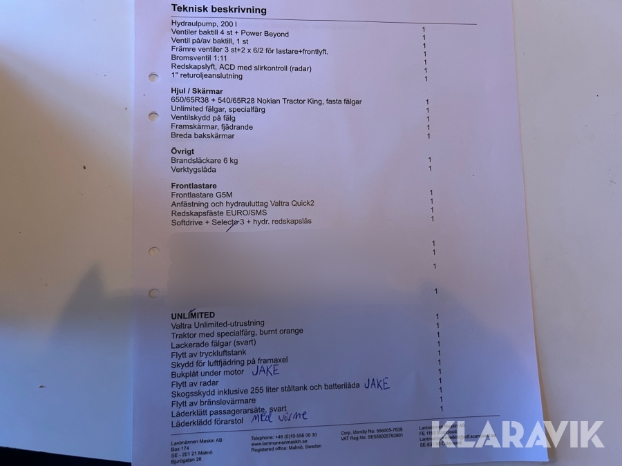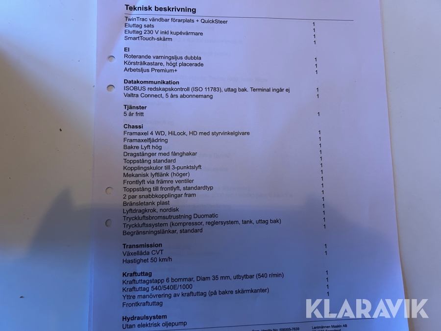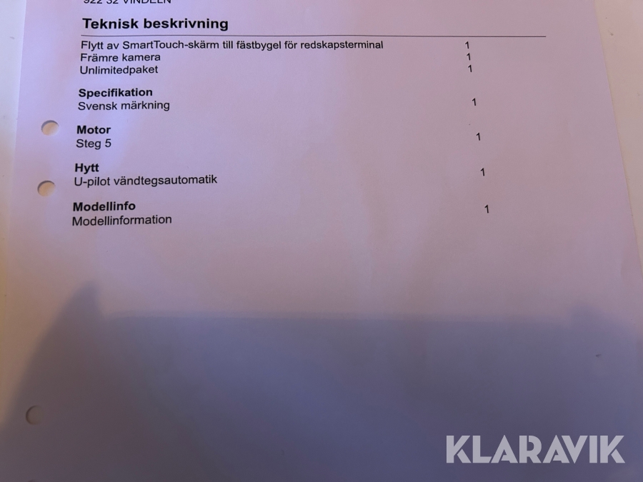 • Serie/chassinummer framgår