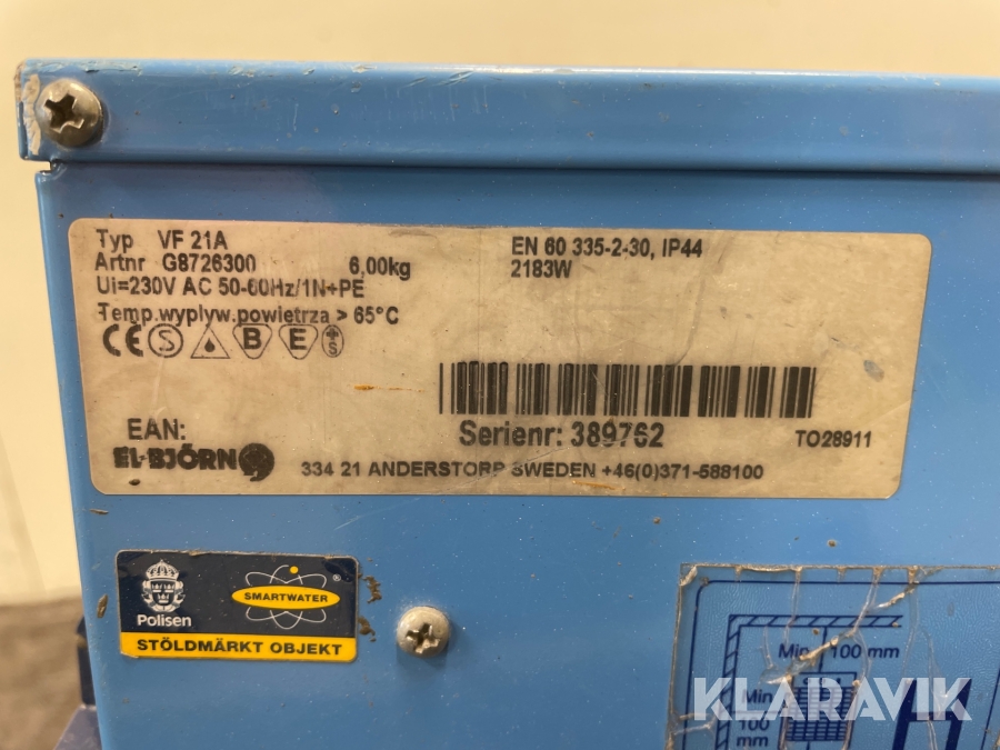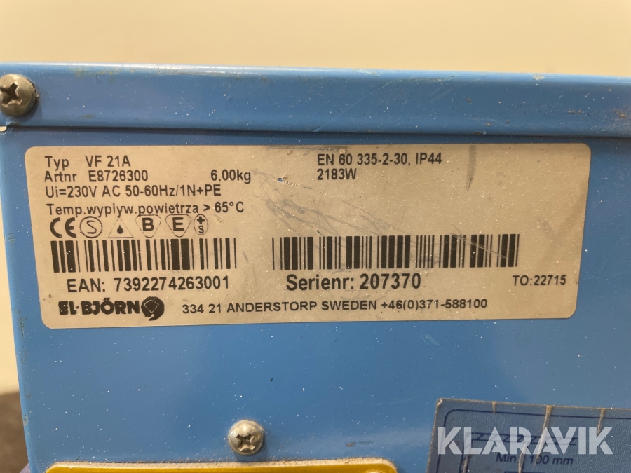 Varmluftsfläktar El-Björn VF 21 A