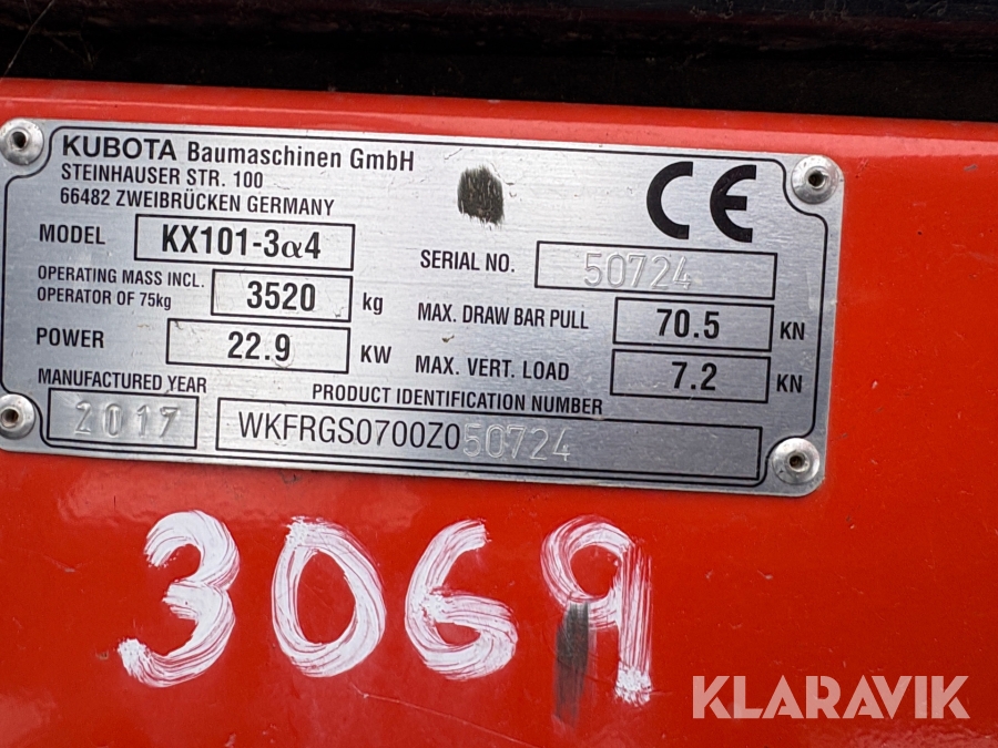 Grävmaskin Kubota KX101-3a4 Med tillbehör
