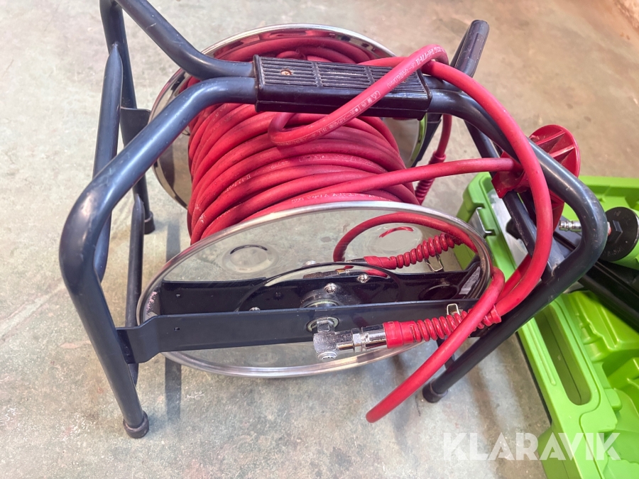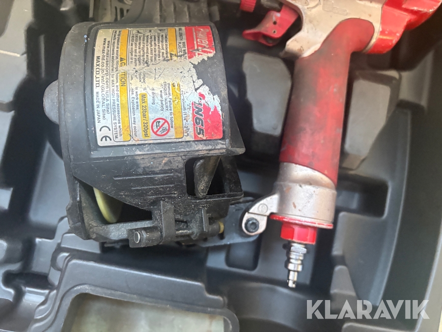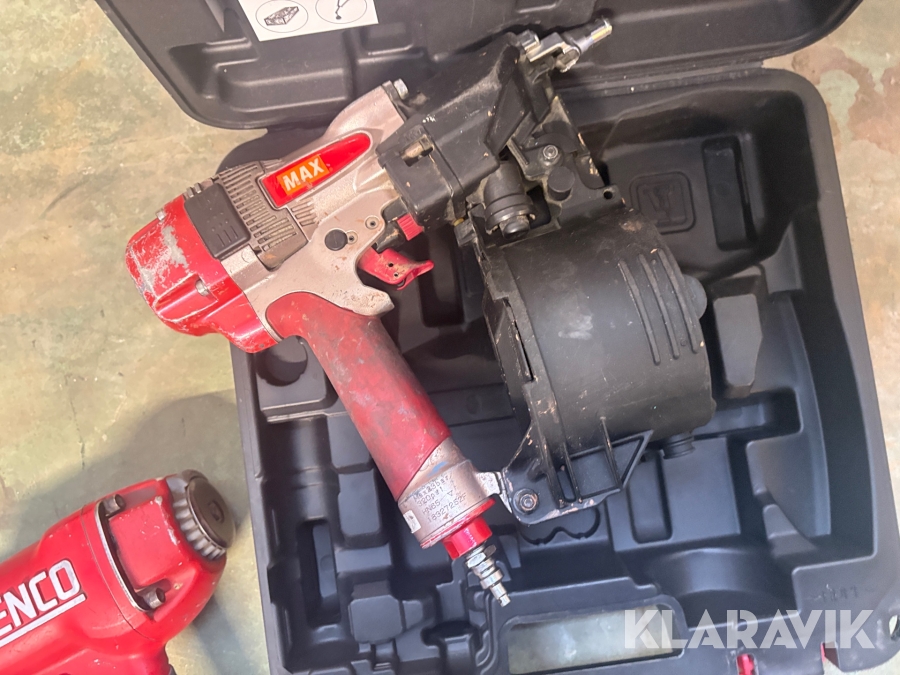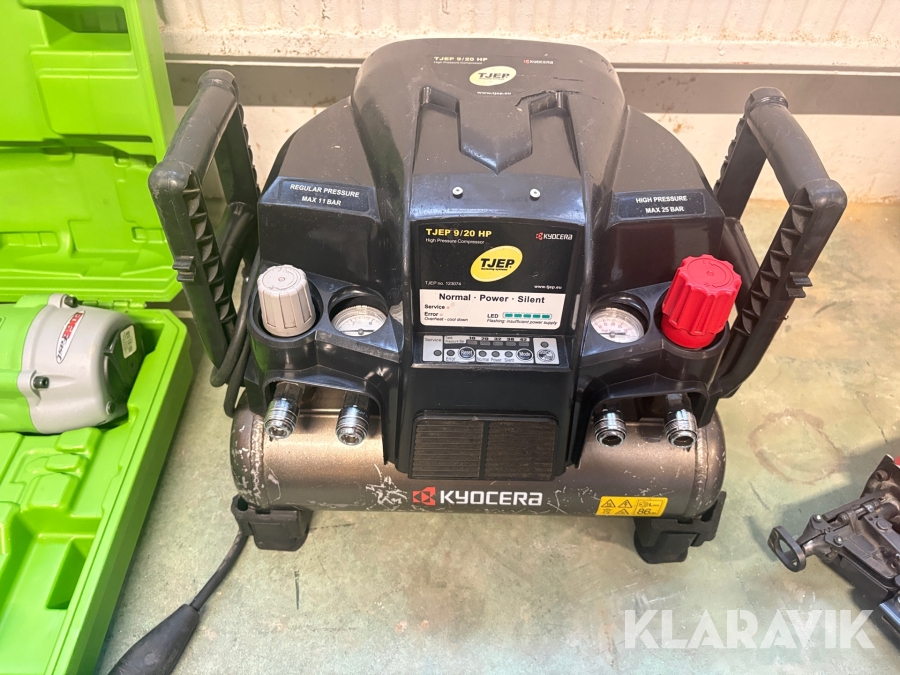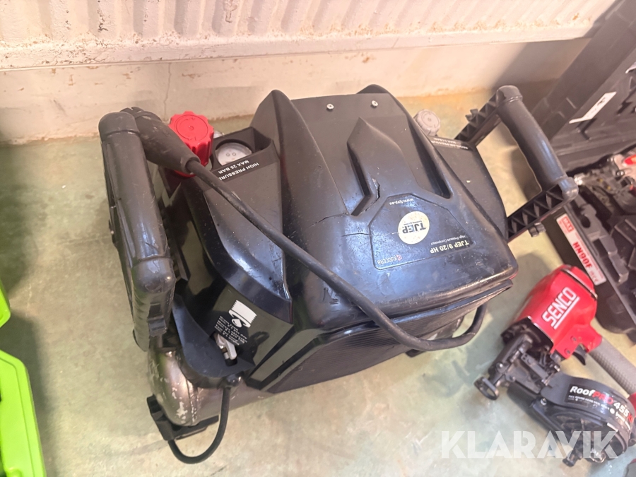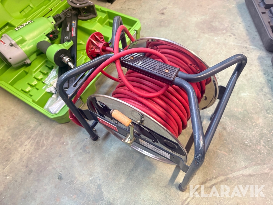 Kompressor, slangvinda och 5 st spikpistoler Tjep/ Senco / Edgefast / Max
