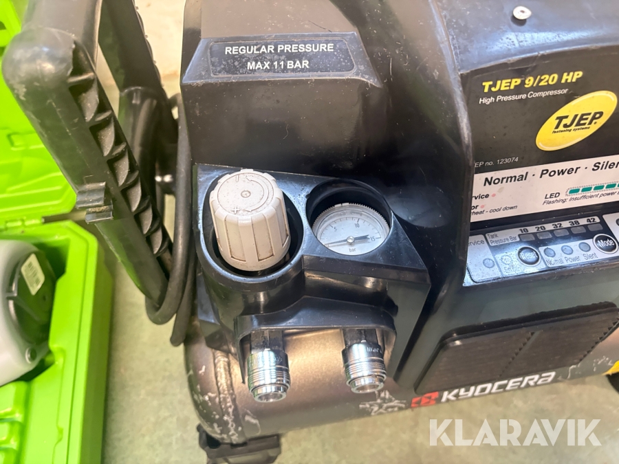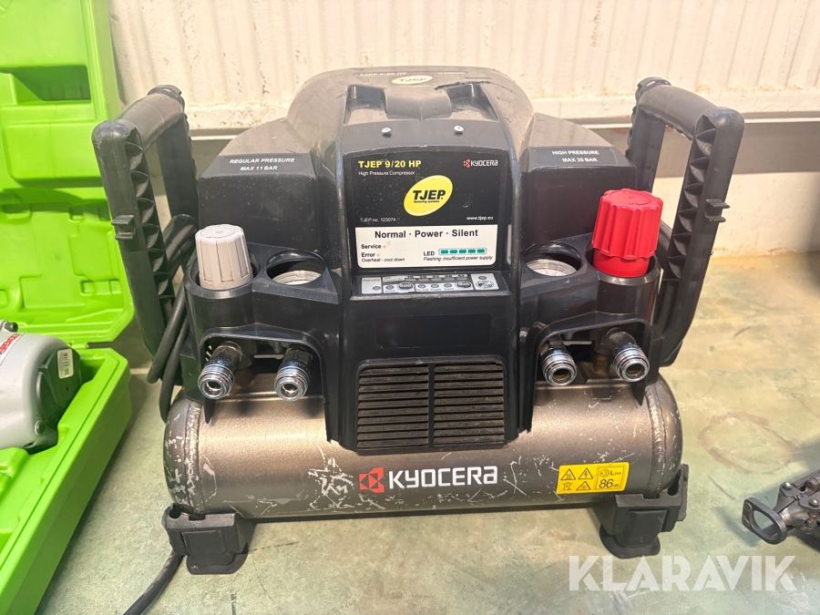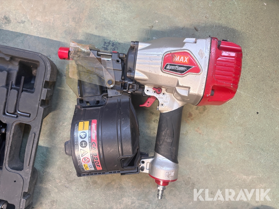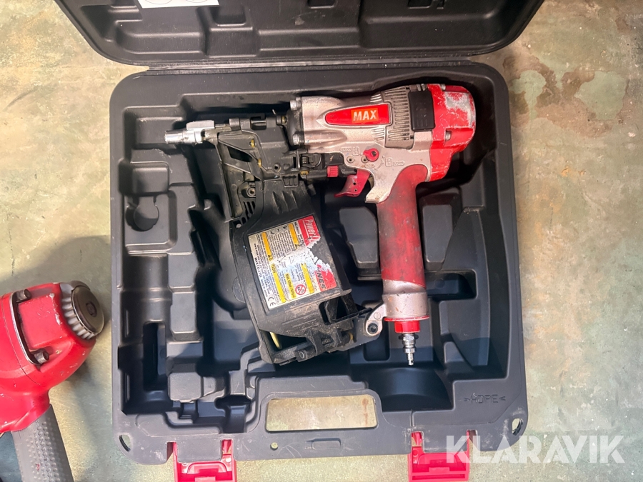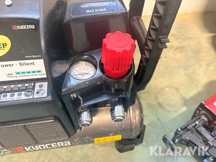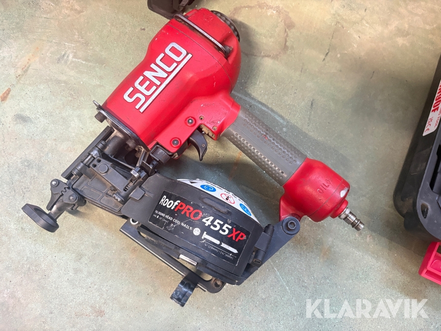 Kompressor, slangvinda och 5 st spikpistoler Tjep/ Senco / Edgefast / Max