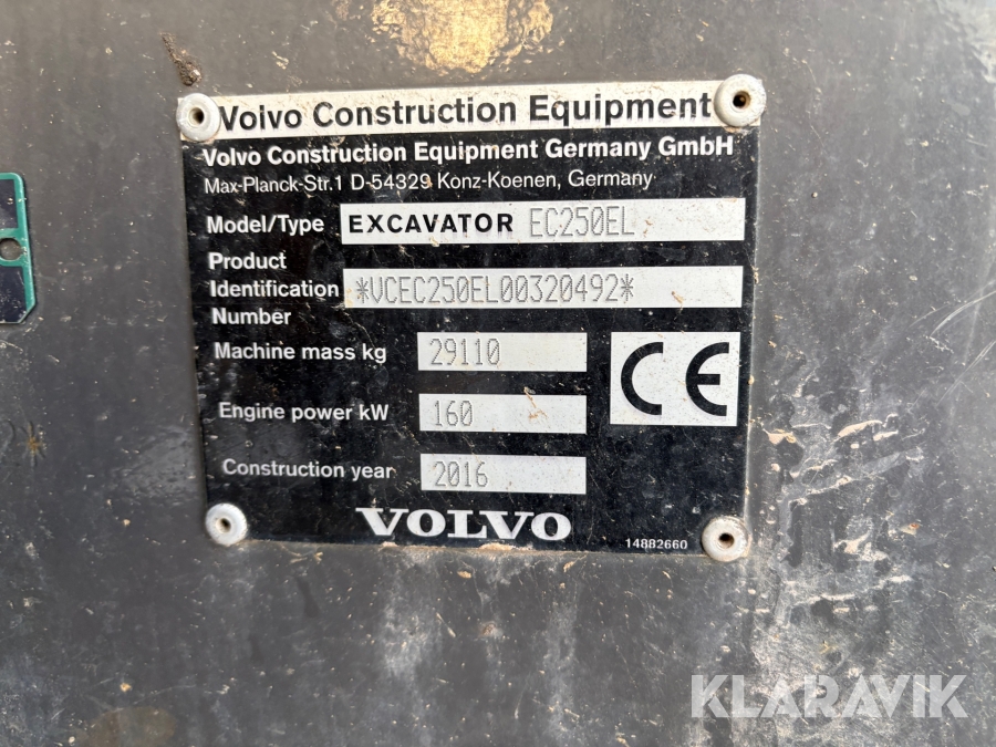 Grävmaskin bandburen Volvo EC250EL med tiltrotator och 1 st skopa