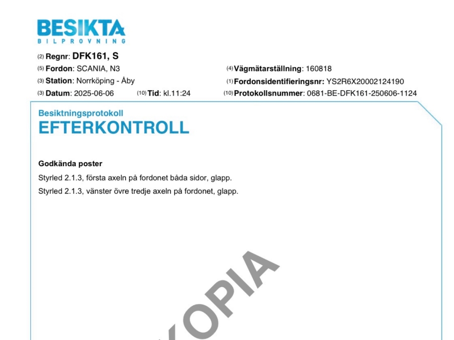 • Serie/chassinummer framgår