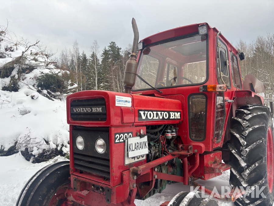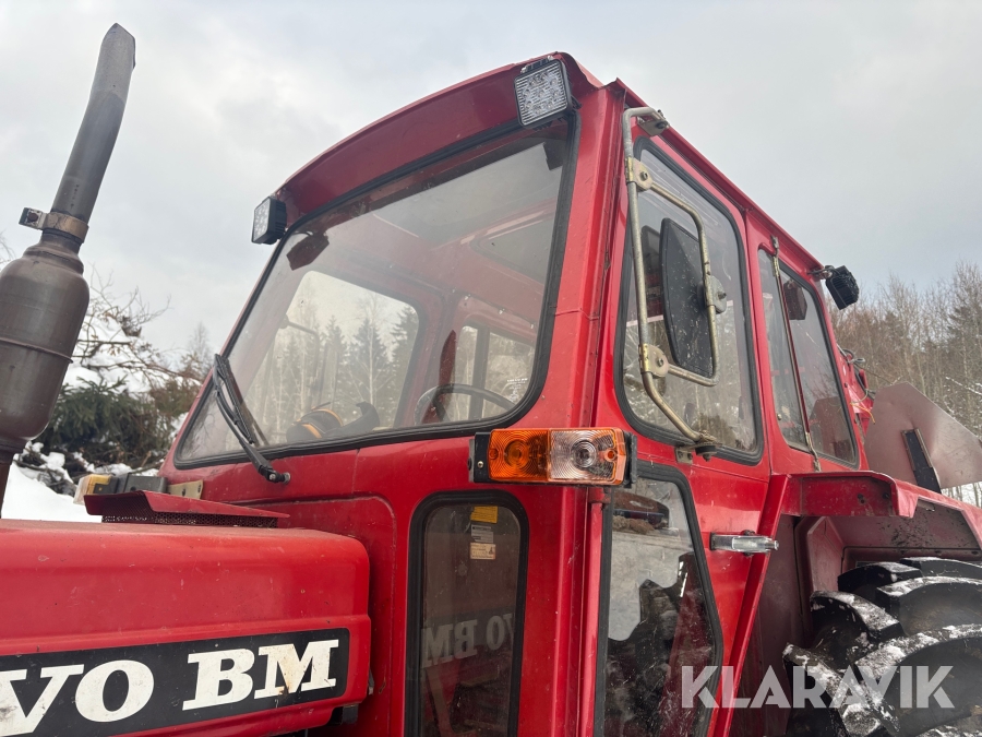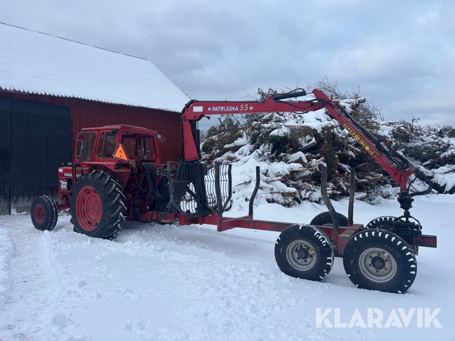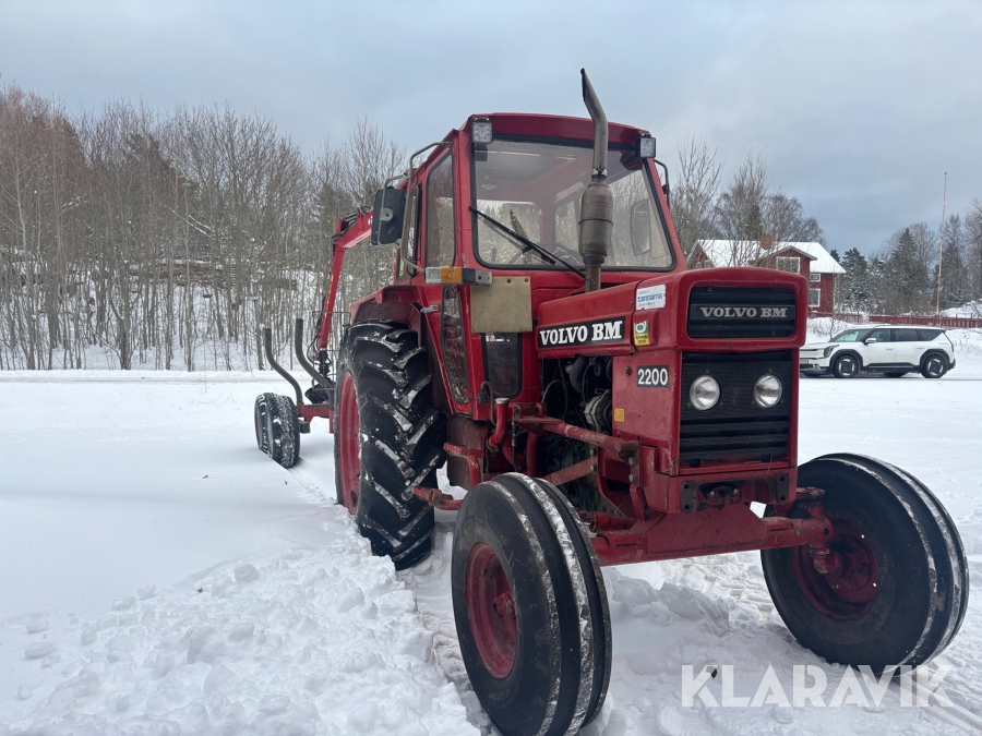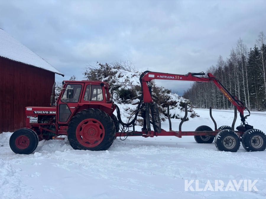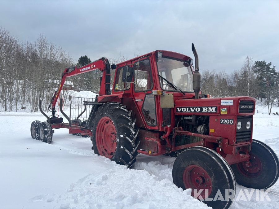 Traktor Volvo BM 2200 med frontlastare och skogskärra med kran