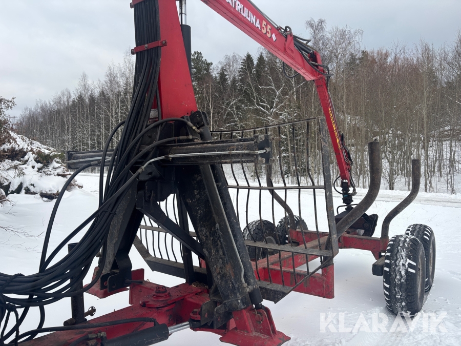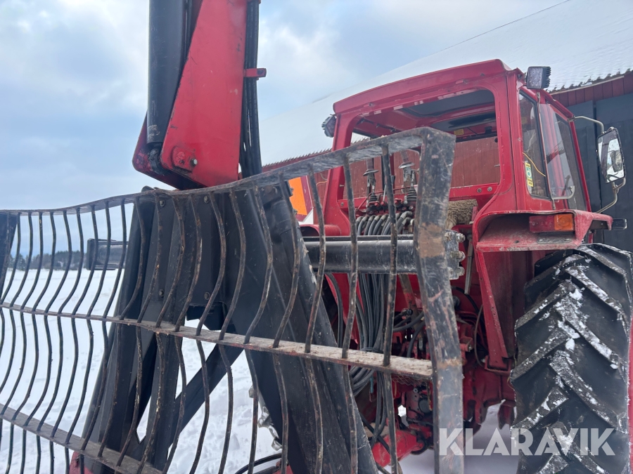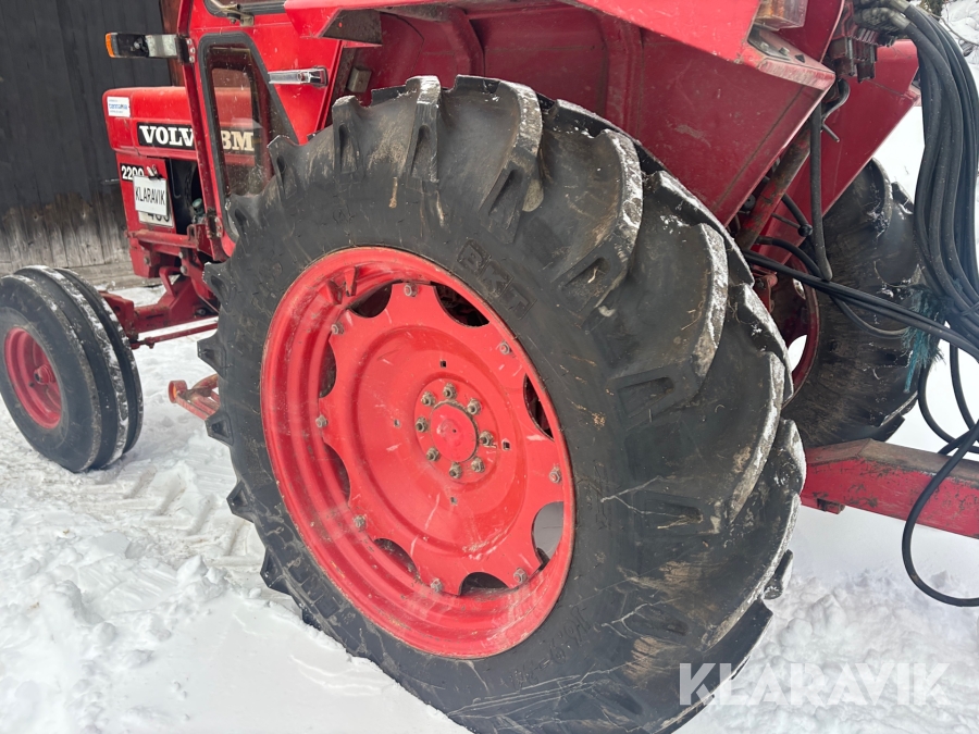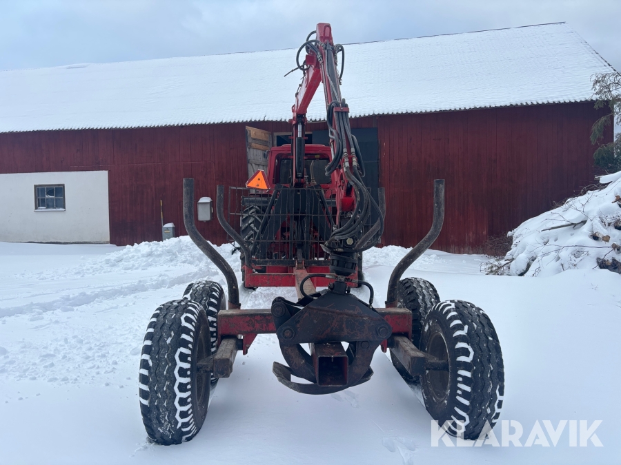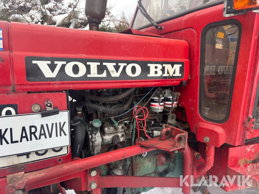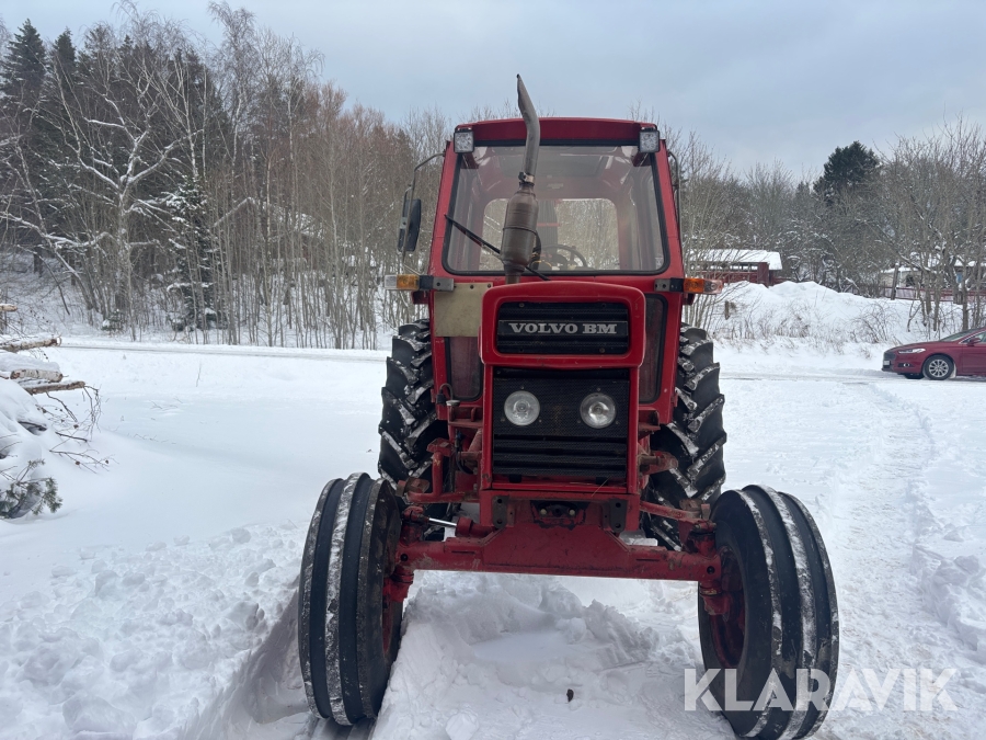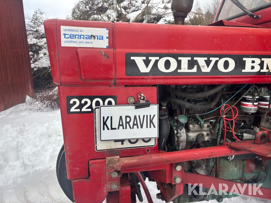 Traktor Volvo BM 2200 med frontlastare och skogskärra med kran