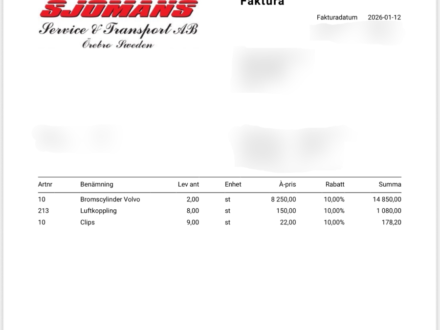 Boka frakt? Det finns ingen specifik information om frakt för just det här objektet, men om du skickar oss en förfrågan via vårt fraktformulär, så undersöker vi möjligheten. Paket, EU-pall eller större maskin? Klaravik har fraktavtal med Schenker och i de fall vi kan hjälpa till med frakt gäller det objekt som ryms i paket eller inom en EU-pall (upp till 120*80 cm och 990 kg). Det går att beställa frakt inom Sverige, dock inte till utlandet. Vid frakt på större maskiner rekommenderar vi gärna transportföretag som du kan kontakta.