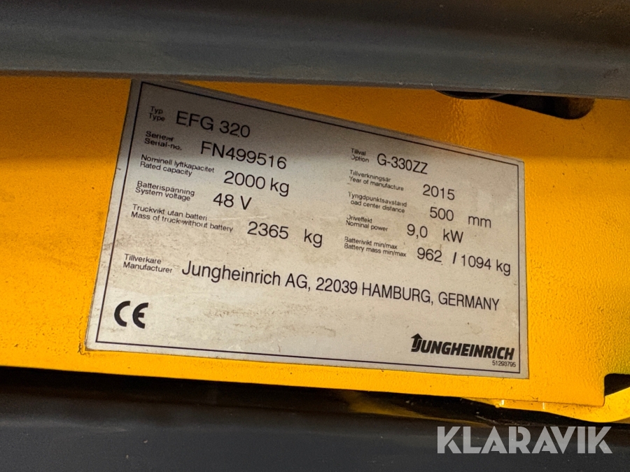 Truck Jungheinrich EFG 320 med 2000 mm gafflar