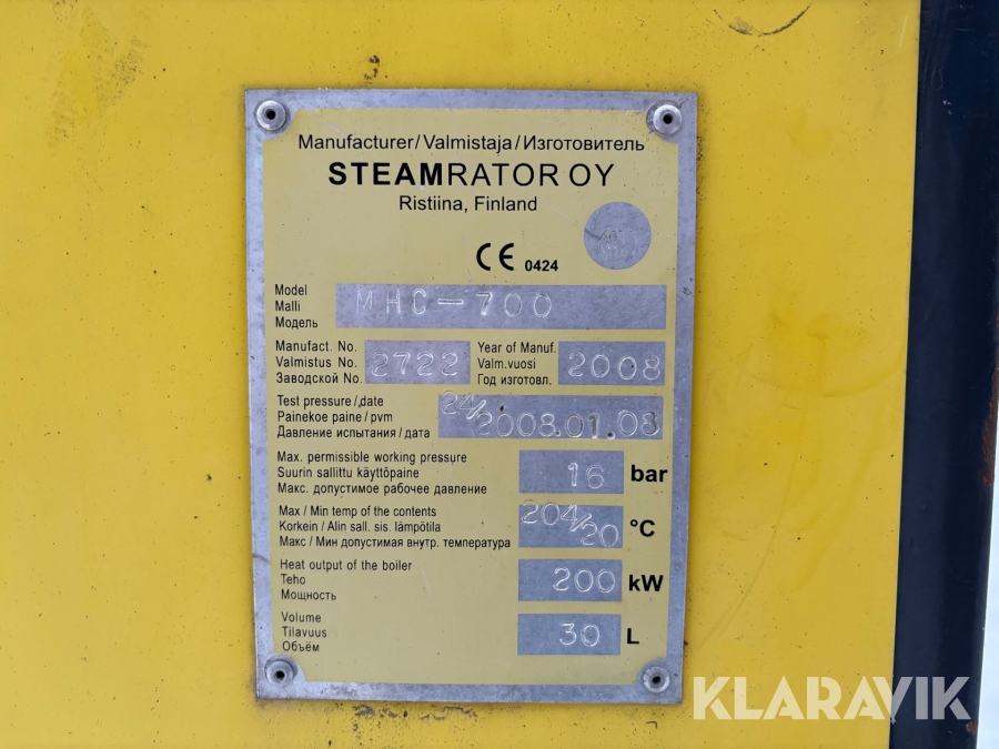 Ånggenerator / ångpanna Steamrator MHC-700 200kW