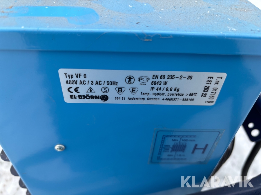 Boka frakt? Det finns ingen specifik information om frakt för just det här objektet, men om du skickar oss en förfrågan via vårt fraktformulär, så undersöker vi möjligheten. Paket, EU-pall eller större maskin? Klaravik har fraktavtal med Schenker och i de fall vi kan hjälpa till med frakt gäller det objekt som ryms i paket eller inom en EU-pall (upp till 120*80 cm och 990 kg). Det går att beställa frakt inom Sverige, dock inte till utlandet. Vid frakt på större maskiner rekommenderar vi gärna transportföretag som du kan kontakta.