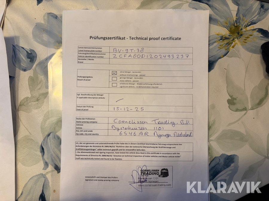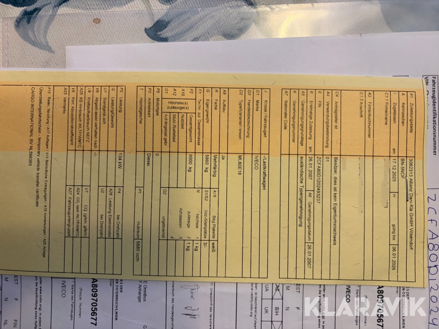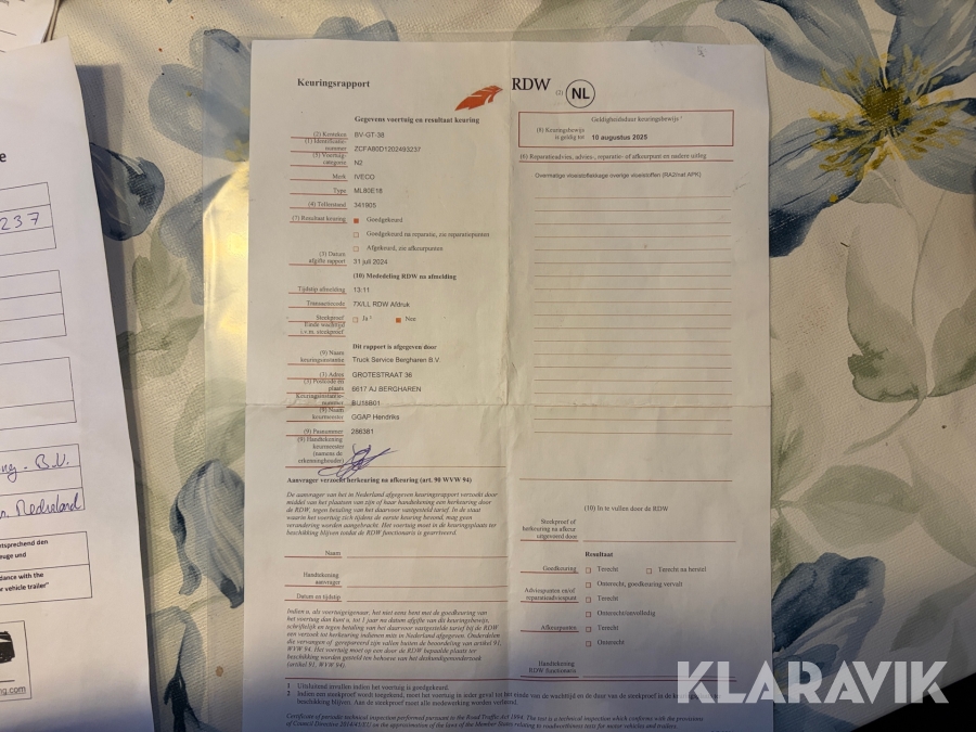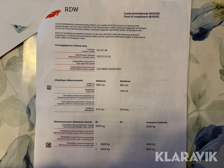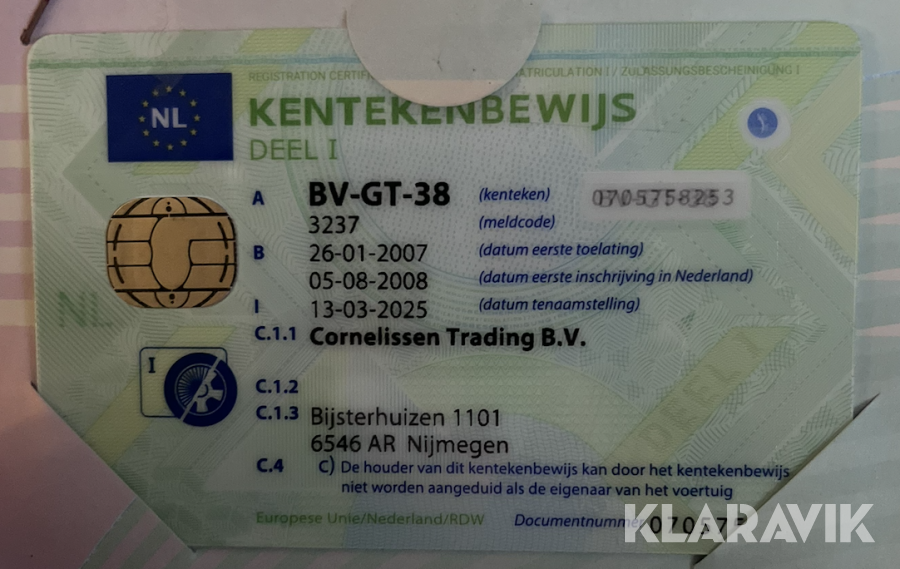 Lastbilen är avregistrerad i Nederländerna. De dokument som finns syns på bilderna, det är det som finns.
