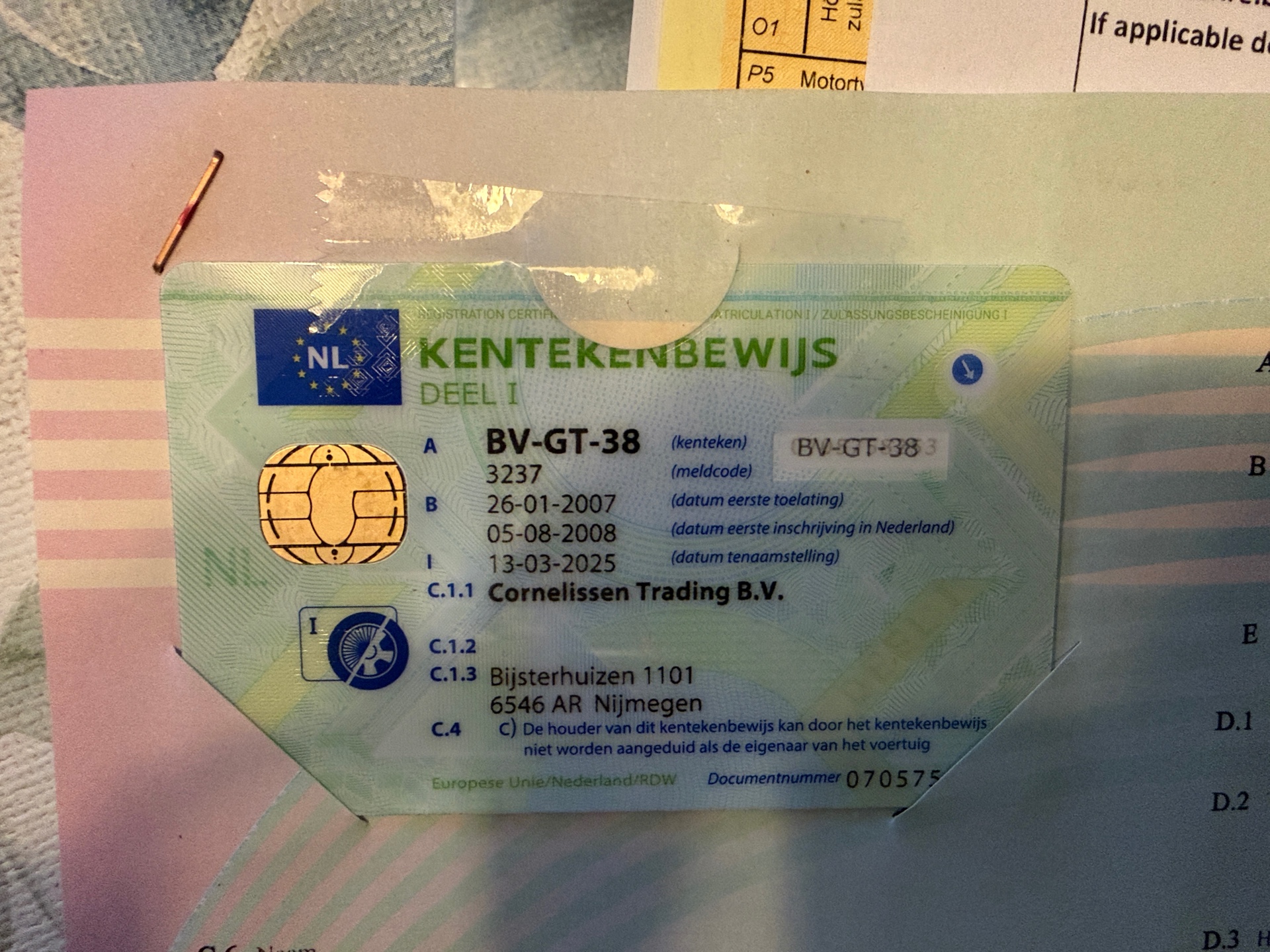 The vehicle is deregistered in the Netherlands. Only the documents shown in the images exist.