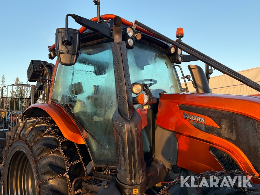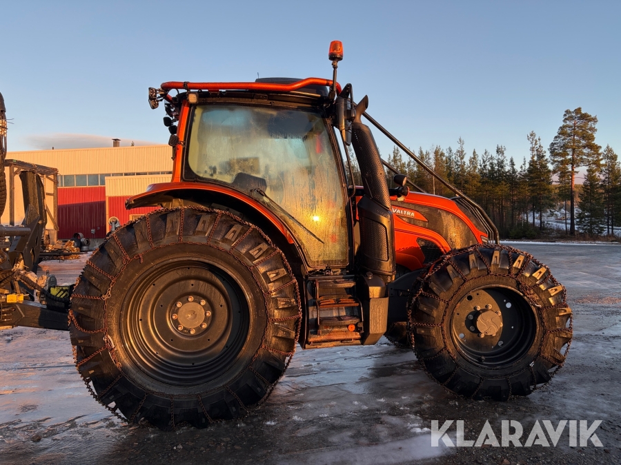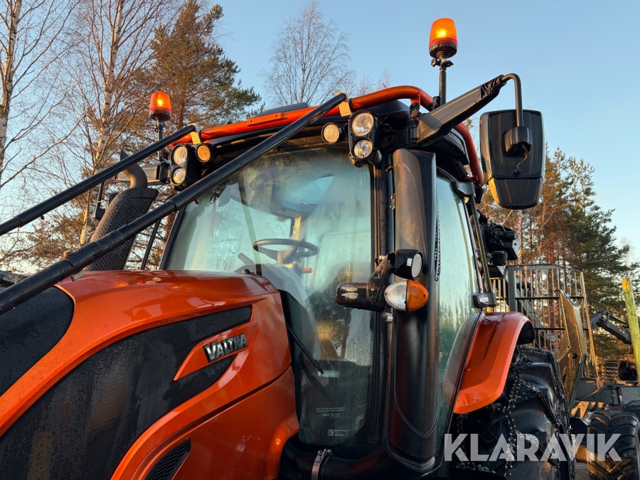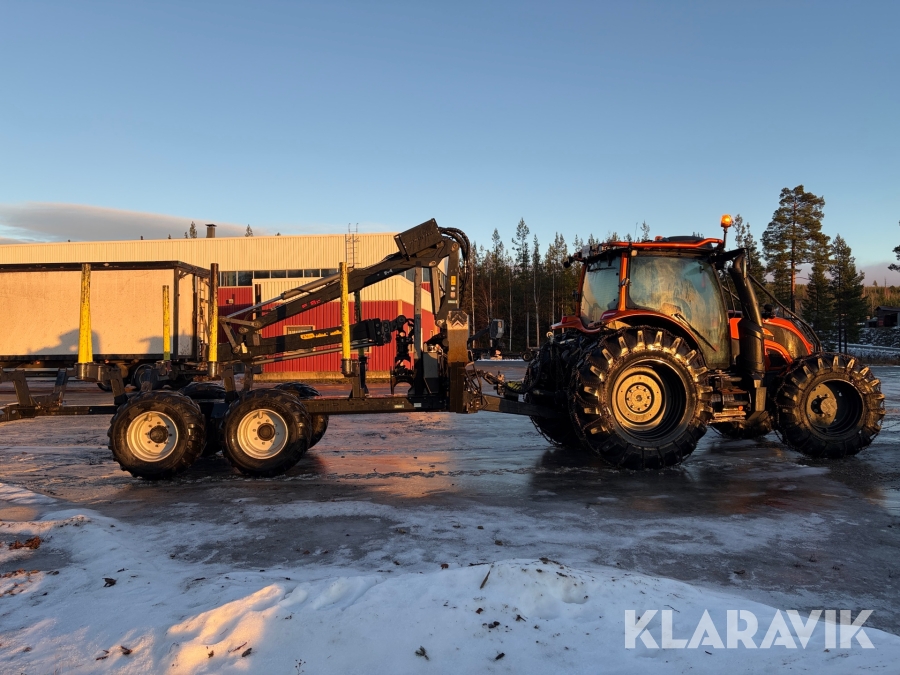Traktor Valtra N134 152hk Skogsutrustad med Twintrack och Palms 12t U-Ram Skogsvagn