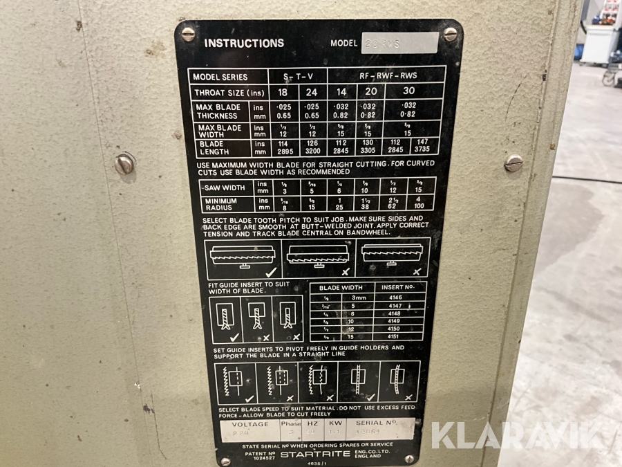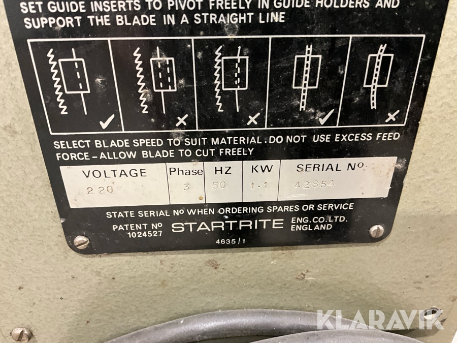Vertikal Bandsåg Startrite 20 RWS